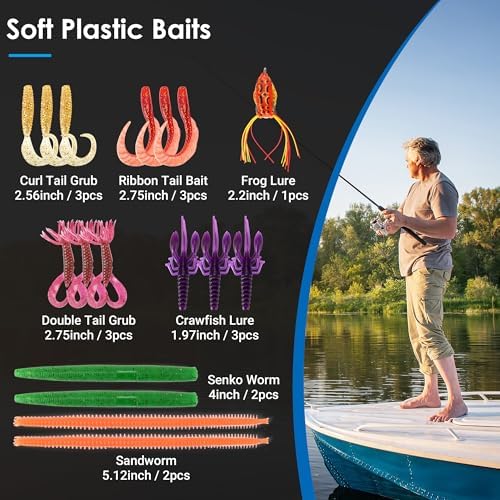 GOANDO Fishing Lures Fishing Gear Tackle Box Fishing Attractants for Bass Trout Salmon Fishing Accessories Including Spoon Lures Soft Plastic Worms Crankbait Jigs Fishing Hooks