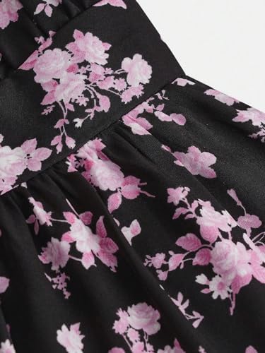 Floerns 女童花卉印花无袖褶皱褶边下摆 A 字型吊带短款连衣裙