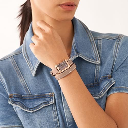 Fossil Raquel 女士手表带矩形表壳和不锈钢手链或皮革表带