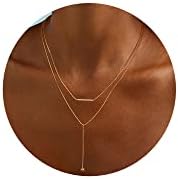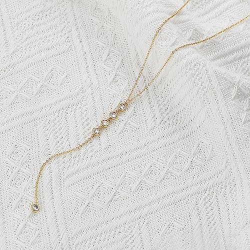 Foxgirl 女式套索金项链,精致长项链 14k 镀金/银色 Y 形吊坠项链时尚分层方晶锆石串珠项链吊坠项链简约金色首饰女士礼物