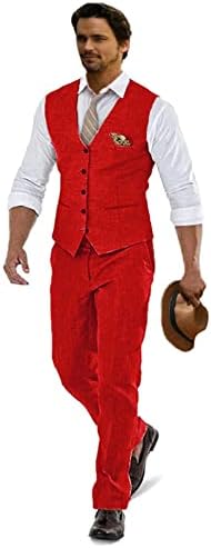 Furuyal 亚麻西装男士休闲婚礼服2件套伴郎燕尾服夏季沙滩舞会背心和裤子套装