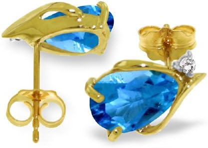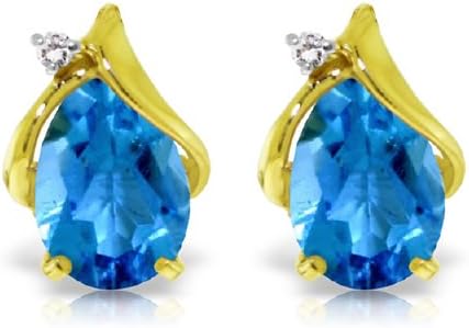 Galaxy Gold GG 14k 黄金泪珠蓝色托帕石钻石点缀项链和耳环套装