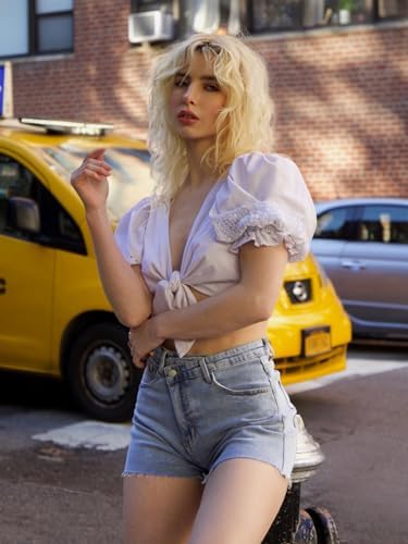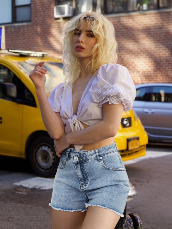 Genleck 女式交叉牛仔短裤 - 弹力高腰时尚牛仔短裤曲线休闲夏季服装