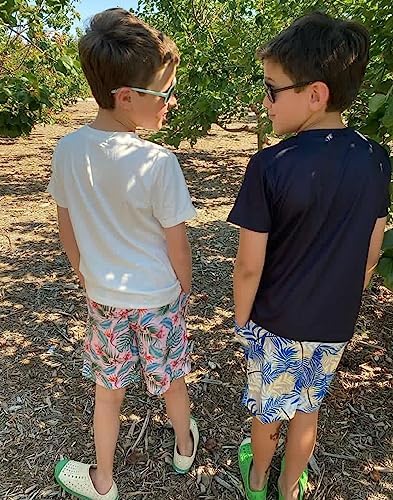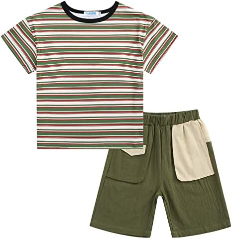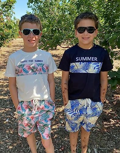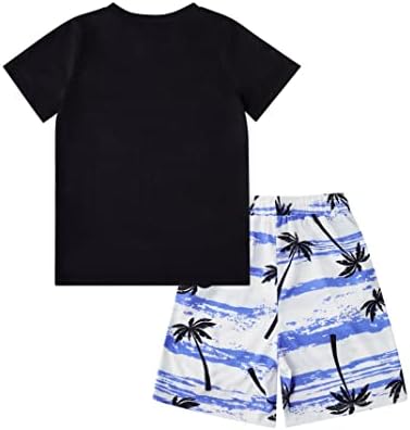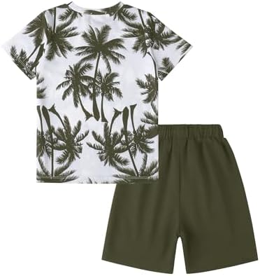 GERU 男孩短裤套装夏威夷服装儿童叶子花卉短袖衬衫上衣 + 短裤套装, 椰子色和黑色