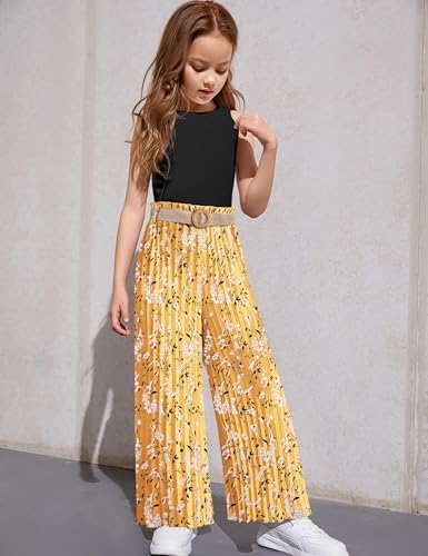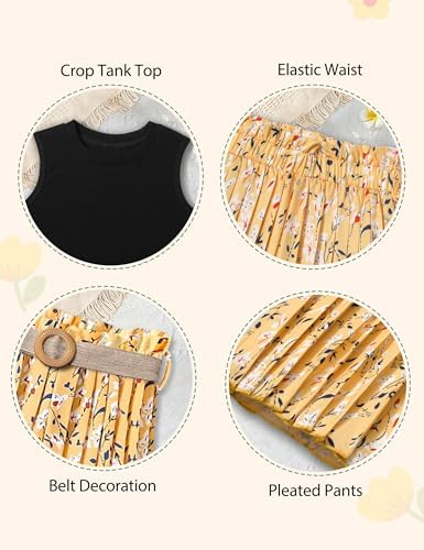 女童服装 7-14 岁童装女童罗纹露脐背心 + 百褶阔腿裤女孩 2 件夏季服装