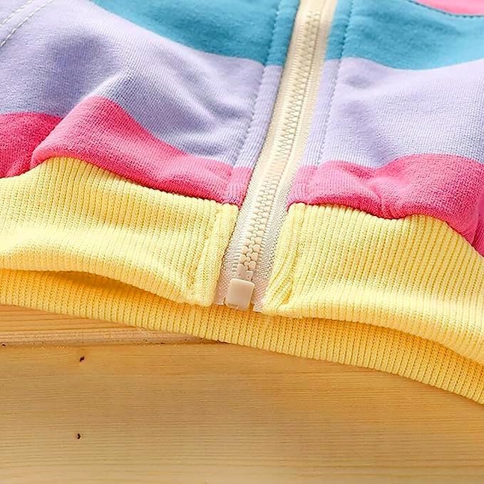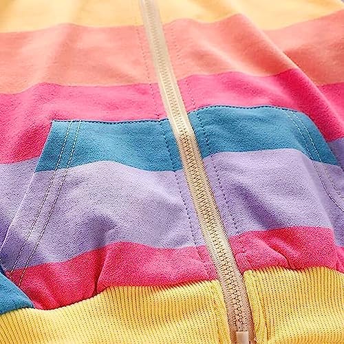 女童拉链连帽夹克幼儿独角兽彩虹运动衫儿童连帽外套休闲外套尺码 2-7 岁