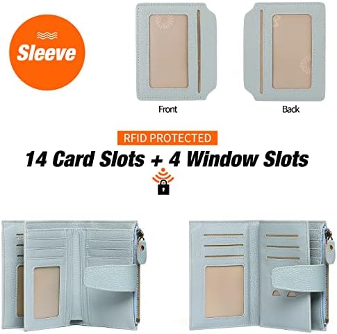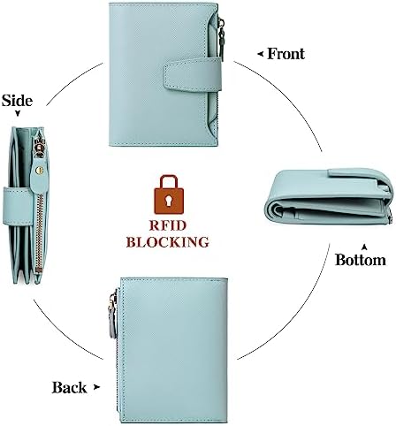 GOIACII 小号女式钱包 RFID 屏蔽 双折真皮钱包 带拉链零钱袋 证件窗口, A01 蜡孔雀蓝, 极简主义
