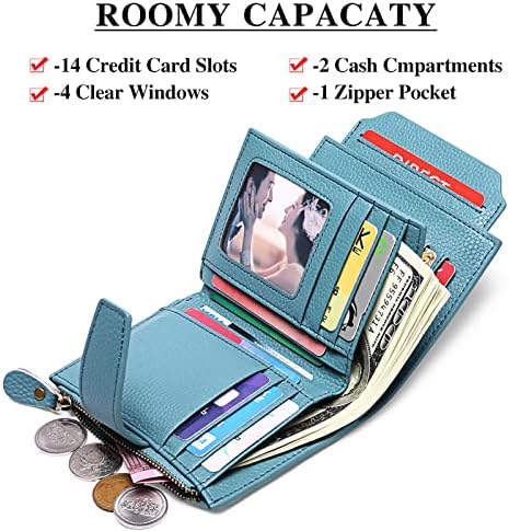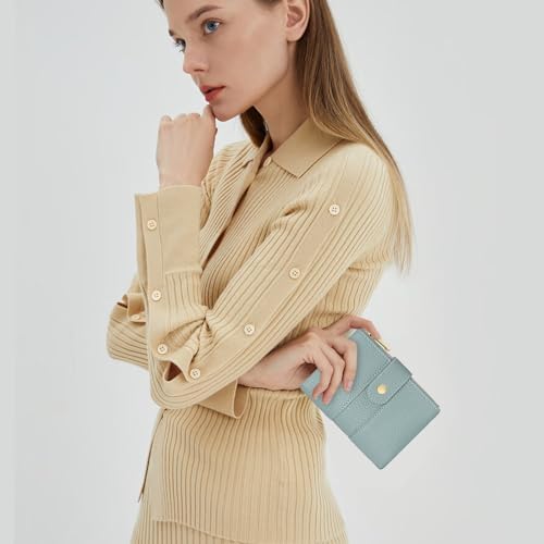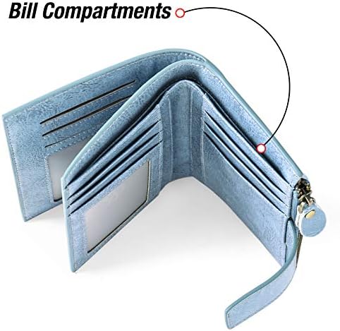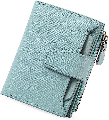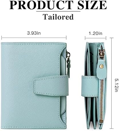 GOIACII 小号女式钱包 RFID 屏蔽 双折真皮钱包 带拉链零钱袋 证件窗口, A01 蜡孔雀蓝, 极简主义