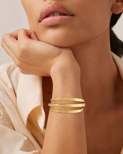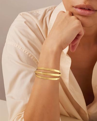 Ettika 女式金色手镯。粗金手链,女式手链套装。3 件弹性蛇形链弹力金色或镀铑手镯