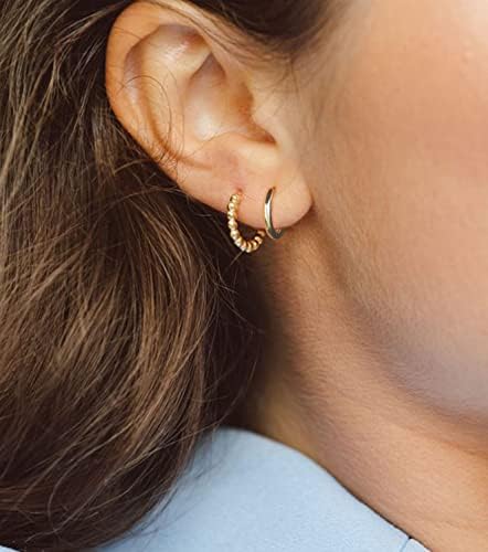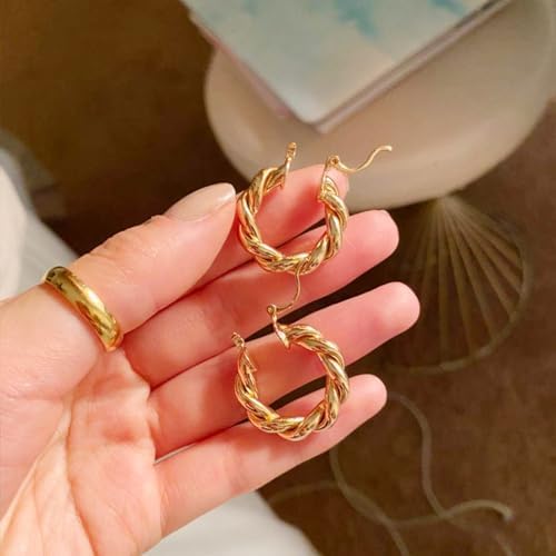 Gold Hoop Earrings Set 14k Real Gold Plated Huggie Earrings Hypoallergenic Chunky Twisted Thick Jewelry for Multiple Piercing Christmas Gift for Women