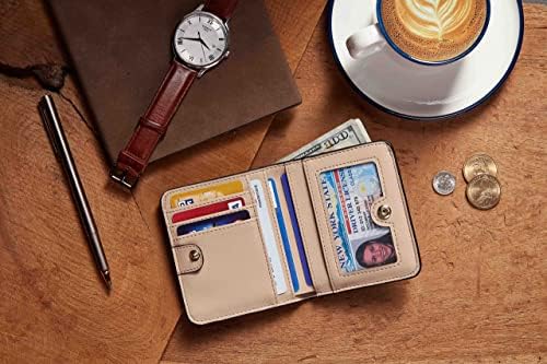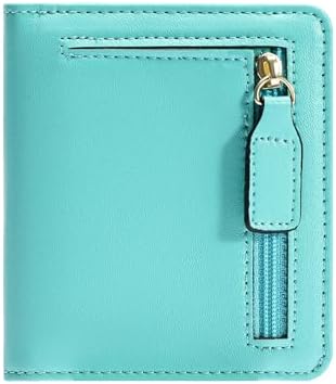 Gostwo 女士小号钱包,超薄双折信用卡夹,紧凑 RFID 屏蔽现金钱包,皮夹薄皮革拉链口袋,迷你钱包礼物,适合少女旅行,带身份证窗口