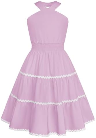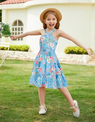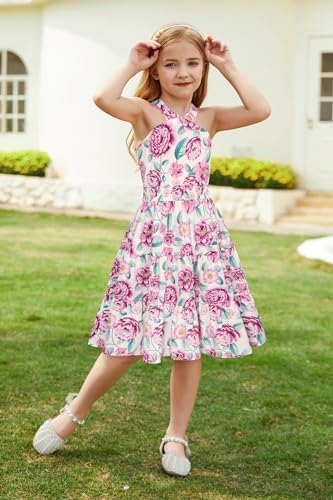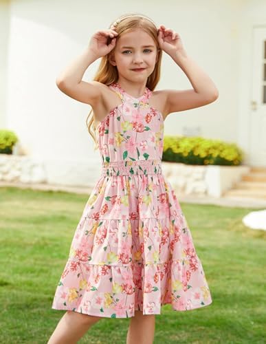 GRACE KARIN 女童夏季连衣裙露肩花卉 A 字中长款连衣裙 5-14 岁