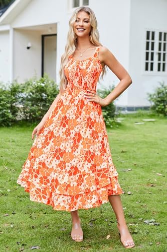 GRACE KARIN 女式 2024 夏季花卉波西米亚连衣裙方领系带秋千 A 字型沙滩长裙