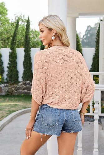 GRACE KARIN 女式钩针夏季开衫披肩 2024 轻质前开襟蝙蝠翼开衫毛衣外套