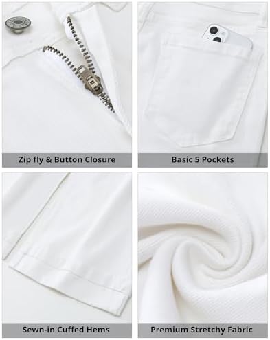 luvamia 女式七分牛仔裤高腰修身直筒弹力牛仔七分裤贴边口袋休闲七分牛仔裤