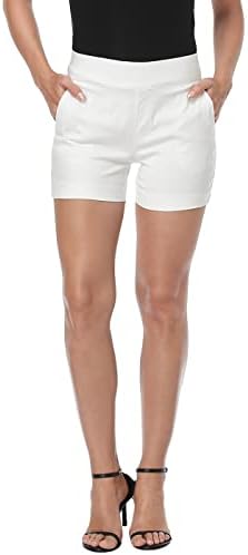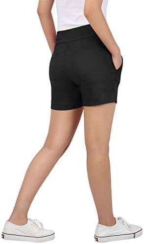 HDE 女式斜纹棉布短裤 4 英寸内缝弹性高腰休闲夏季短裤