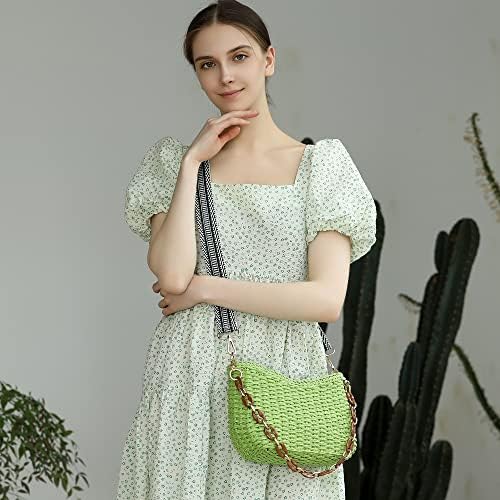 Straw Handbags 钱包斜挎包口袋书包休闲编织沙滩包夏季流浪汉嬉皮别致手提包带链