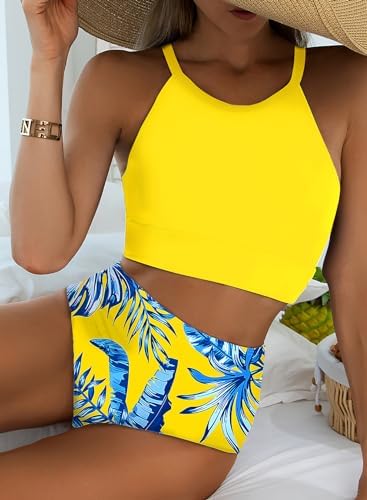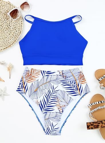 Herseas 女式比基尼套装高领热带叶子印花高腰两件套泳衣