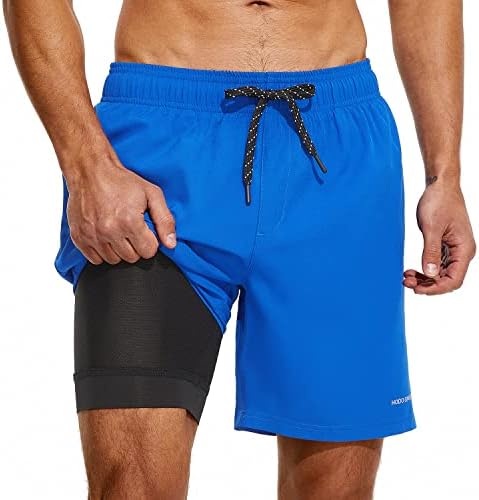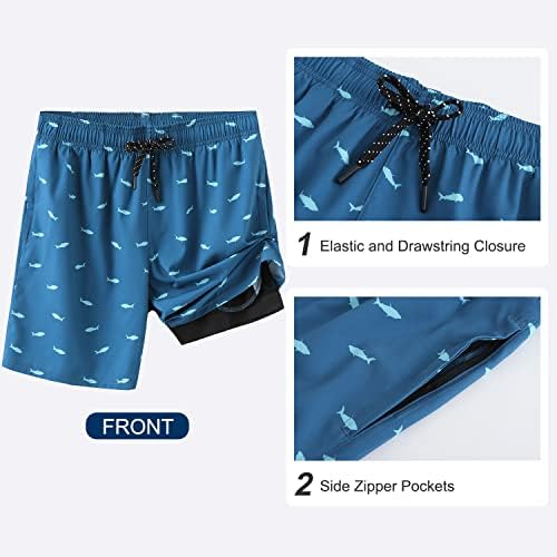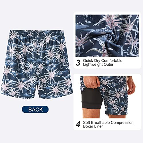 HODOSPORTS Mens Swimsuit Trunks 7" Quick-Dry Swim Shorts with Compression Liner and Zipper Pockets