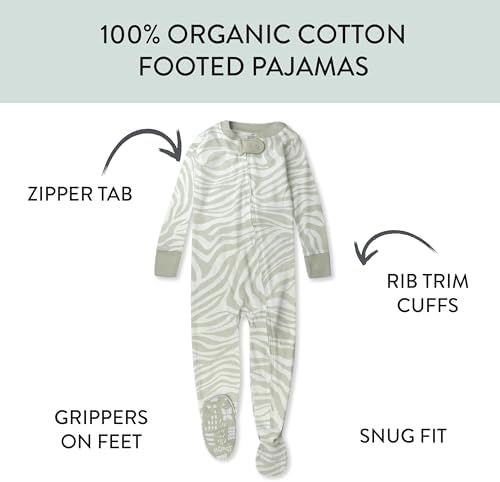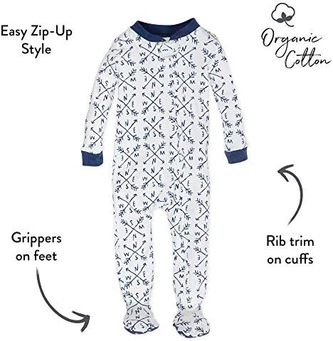 HonestBaby 防滑连脚睡衣连体睡衣前拉链睡衣 100% 有机棉适合男婴