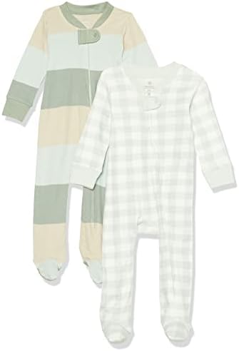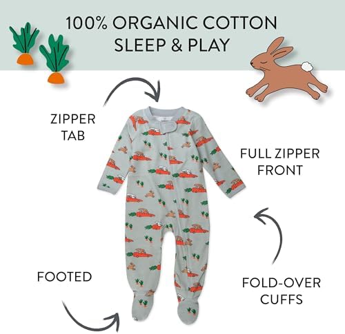 HonestBaby Sleep and Play 连脚睡衣连体睡衣前拉链睡衣有机棉适合男婴,中性款