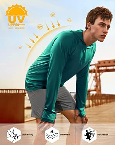 isnowood 防晒衫 UPF 50+ 男式钓鱼长袖防紫外线连帽衫徒步防晒游泳跑步