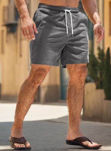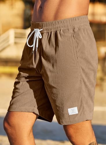JMIERR Men's Corduroy Shorts Casual Elastic Waist Drawstring Lightweight Summer Beach Shorts