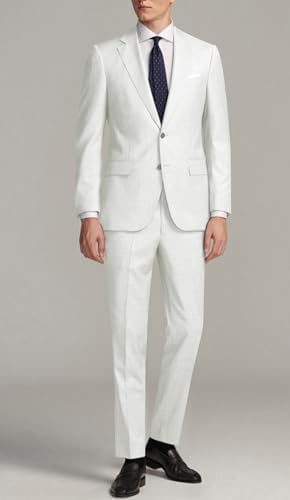 JPF 男式 2 件套修身西装套装,两粒扣纯色夹克裤子带领带套装