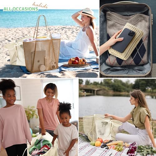 KALIDI 沙滩网眼手提包,休闲手提包 Hobo 女式可折叠 MAX 23L 单肩包 适合海滩野餐度假