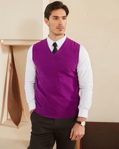 Kallspin 男式纯棉毛衣背心 V 领常规版型针织无袖套头毛衣