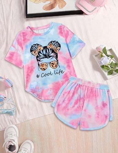 KANGKANG 女童服装扎染短袖上衣 + 短裤 2 件儿童夏季 T 恤套装