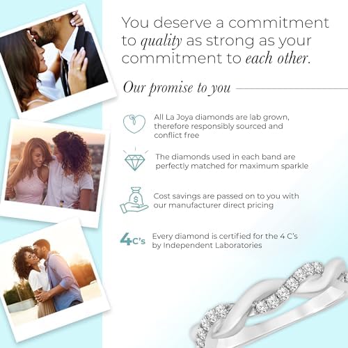La Joya 1/4-1/2 CT TW 认证实验室种植交织钻石戒指 | 实心 10k 白金扭纹藤蔓灵感钻石婚戒 | 闪亮的 GH VS/SI 钻石戒指