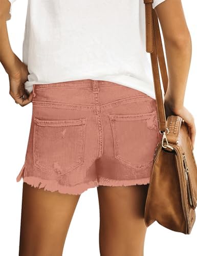 luvamia Women's Casual Mid Rise Denim Shorts Stretch Ripped Raw Hem Jean Shorts