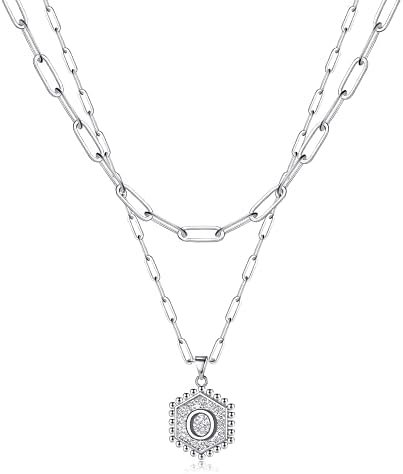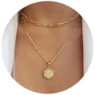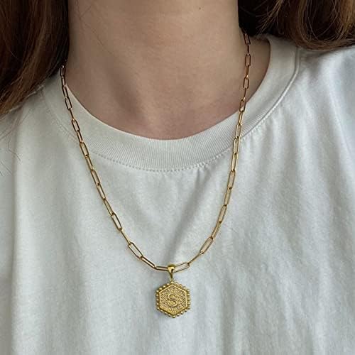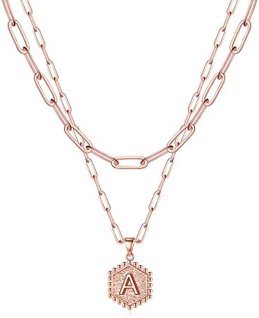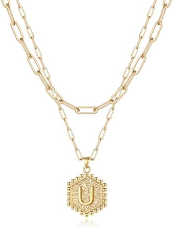 M MOOHAM 女式精致金色项链 - 14K 纯金分层项链 女士可爱六角形字母首字母项链 女士金色分层项链 珠宝礼品