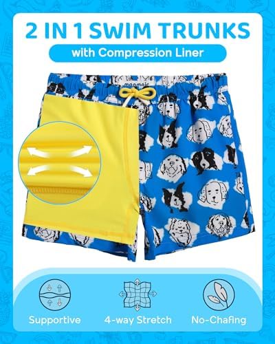 maamgic 男孩游泳裤,带压缩衬里,幼儿男孩泳衣,快干,4 向弹力泳裤