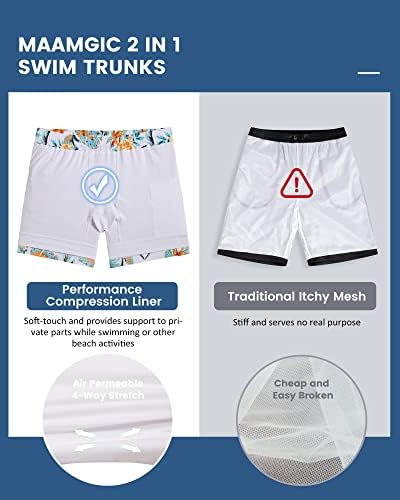 maamgic 男孩游泳裤,带压缩衬里,幼儿男孩泳衣,快干,4 向弹力泳裤