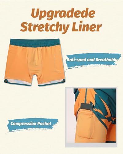 maamgic 男式短裤 80 年代 90 年代 复古 5.5 英寸(约 14 厘米)游泳裤沙滩短裤压缩衬里快干 2 合 1 沙滩泳装
