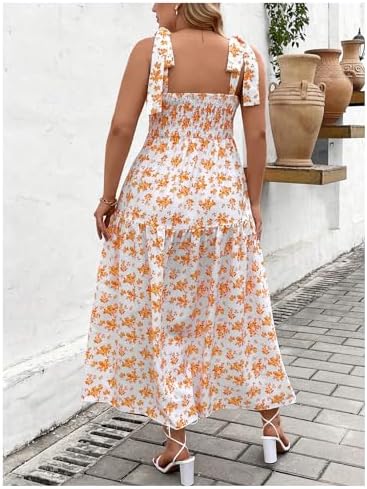 MakeMeChic 女式夏季波西米亚连衣裙休闲花卉印花细肩带方领长裙沙滩太阳裙
