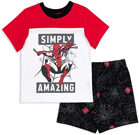 Marvel 蜘蛛侠图案 T 恤和短裤套装,幼儿到大孩子