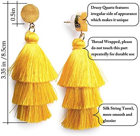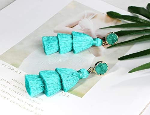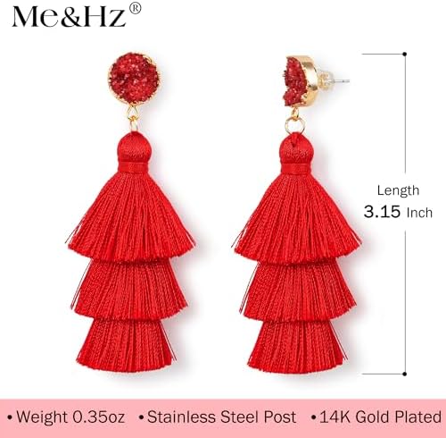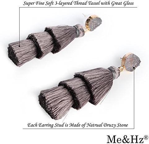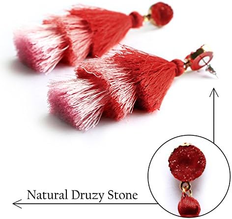 Me&Hz 彩色分层流苏耳环波西米亚分层流苏 Druzy 耳钉吊坠耳环女士少女圣诞节母亲节礼物