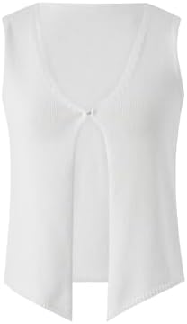 Meihuida Women Crochet Vest Top Y2k Knit V Neck Sleeveless Button Down Vintage Casual Streetwear