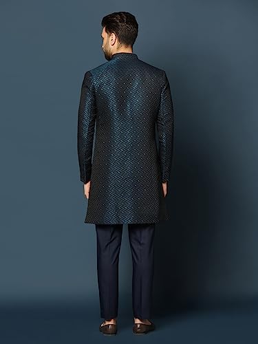 男式 Indowestern 套装,海军蓝,全棉面料,及膝长度,常规版型,民族服装