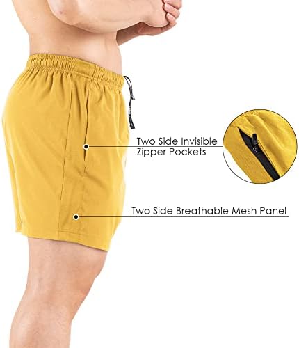 男式 5 英寸跑步短裤 2 件装速干运动健身短裤 带拉链口袋