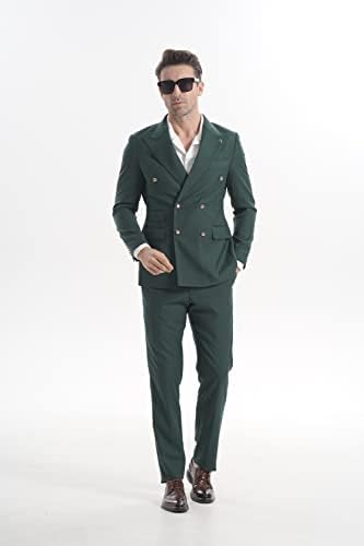 男式修身 2 件套双排扣商务婚礼舞会燕尾服西装外套和裤子套装..