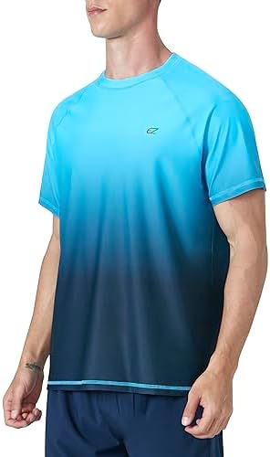 男式游泳衬衫防晒衣 UPF 50+ UV 防晒 T 恤快干钓鱼沙滩 T 恤