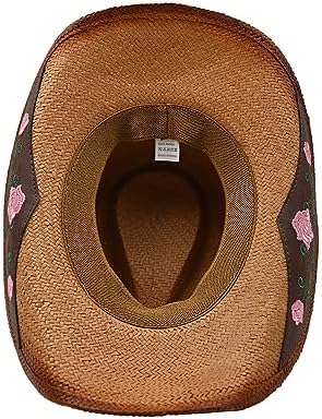 男式女式草编牛仔帽女牛仔编织太阳帽西部牛仔帽两个装饰带