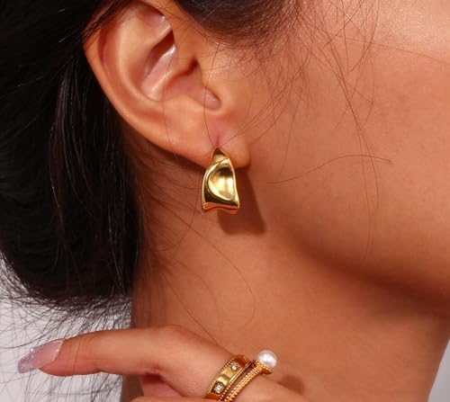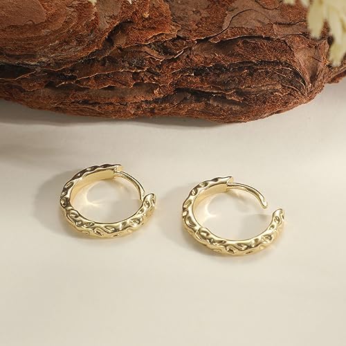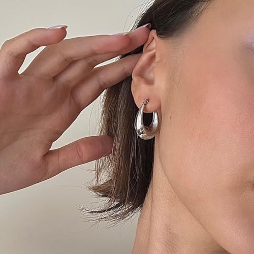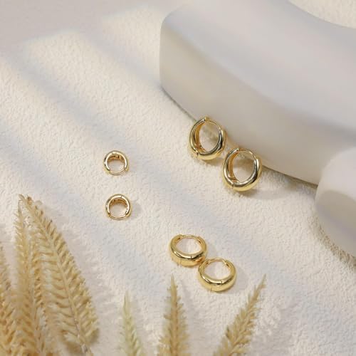 MIDEEO 金/银粗圈式耳环套装女士,14K 镀金扭结 Huggie 环状耳环防过敏厚开口轻质粗圈耳环首饰礼品