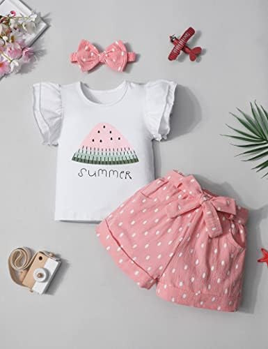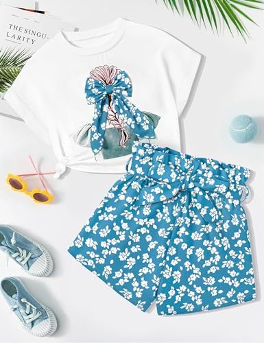 MIGU 女童服装夏季女孩服装套装女孩衣服 T 恤短裤头带 3 件套礼品..