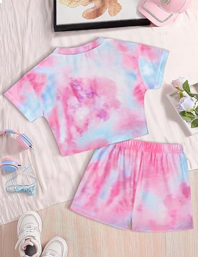 MIGU Toddler Girls Clothes Tie-Dye Summer Outfits Sets with Short Sleeve T-Shirt Top+Girls Shorts 2pcs Sets