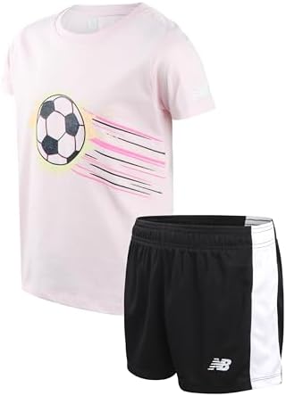 New Balance 女童运动短裤套装 - 2 件高性能 T 恤和健身短裤 (4-12)